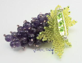 Листочки из японского бисера (Тохо), виноград - аметистовые бусины. Размер 6см*5см. Брошка по урокам Г.Пчелкиной.