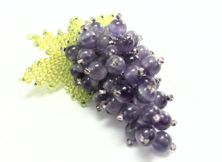 Брошь в виде виноградной грозди с листочками, нежная и сочная