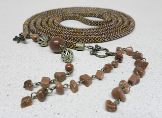 Лариат из чешского бисера. Крошка и бусины авантюрина, фурнитура под бронзу