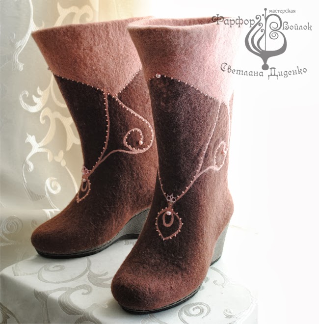 Гардероб Валяние фильцевание Новые валеночки на танкетке "Софи" Шерсть