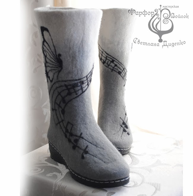 Гардероб Валяние фильцевание Новые валяные сапожки Шерсть