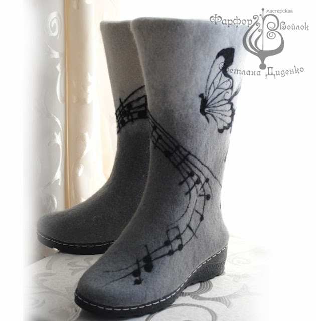 ЗДОРОВО!!!! А первые я назвала бы "Музыка лета", хоть и зимняя обувочка, а тёпленько в них как летом и картиночка на них прямо в тему, она то и навеяла такое название..