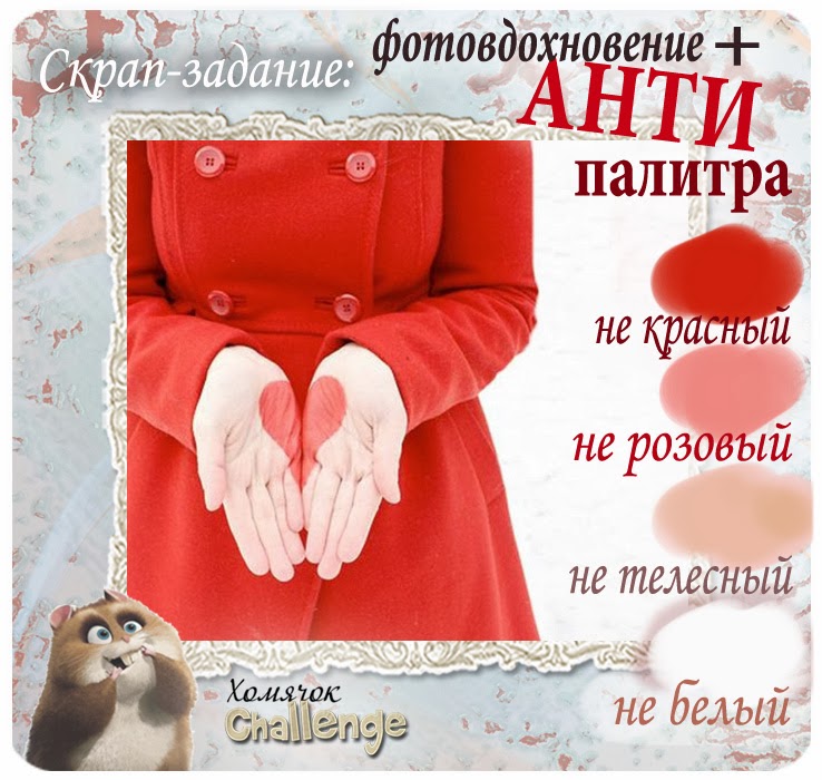 Я впервые хочу поучаствовать в задании от хомячка http://homyachok-scrap-challenge.blogspot.com/2014/02/antipalitra.html )))))))))