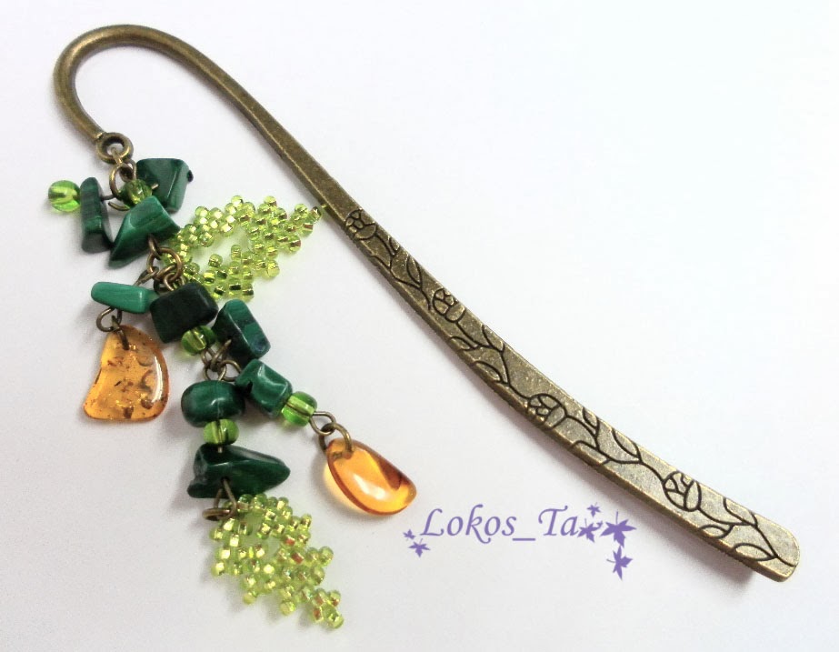 Крошка малахита, крошка янтаря, бисер.