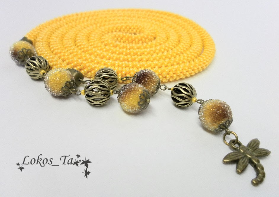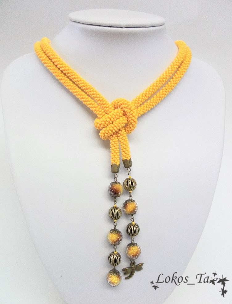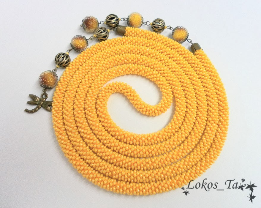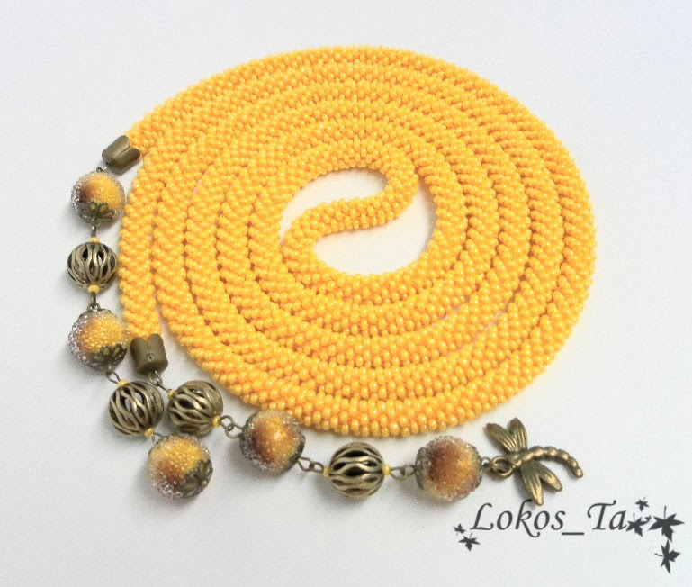 Татьяна! Я совершенно покорена Вашим мастерством! "Вино из одуванчиков" - моё любимейшее произведение, одуванчики - моя нежная любовь, а желтый цвет (именно такой, как у этой работы) - самый мой любимый! И тут такой лариат у Вас увидела! Роскошь неземная!