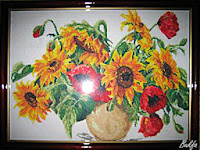 И вот такая (справа) должна была получиться. Я на во-о-он том подсолнухе: втором сверху (вышиваю сверху вниз). Ух! сколько ещё-ё-ё: начать и кончить!