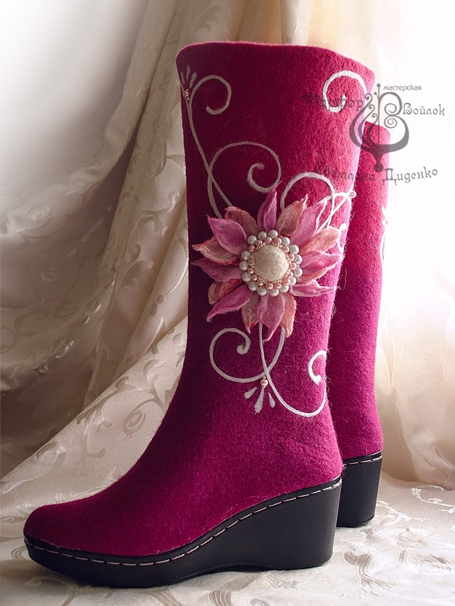 Какая уютная, теплая красота! Изумительные у Вас работы! Обожаю валенки! Даже сама попробовала валять(правда кукольные, но прыгала до потолка, когда получились))))))). А можно в личку цену узнать на такое чудо?