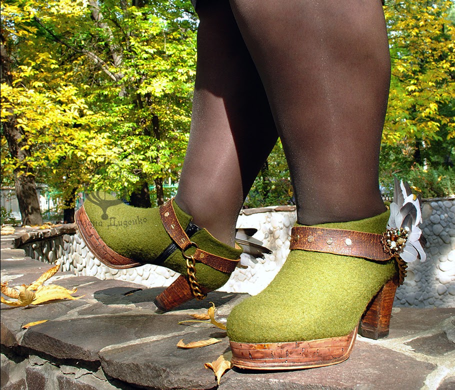 Гардероб Валяние фильцевание Ботильоны Таисия Комбинированная обувь ручной работы из войлока и кожи Кожа Шерсть