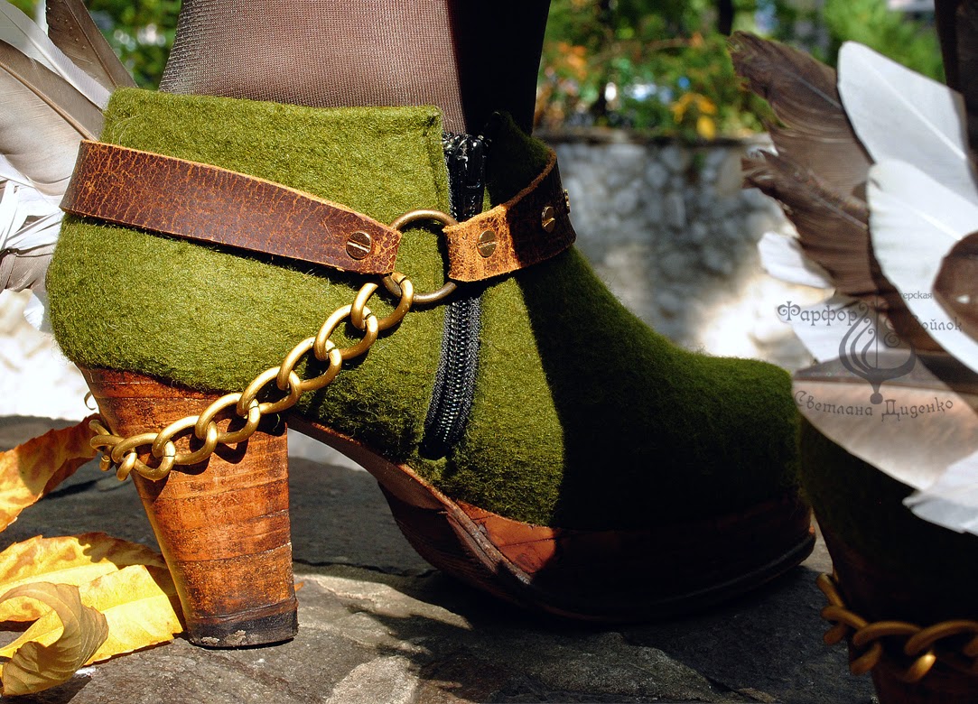 Сапоги "Тая". Полностью натуральные материалы. Ручная сборка. Войлок украшен композицией в стиле стим-панк, что придает ему дополнительную декоративность и шик. Декор съемный. Роскошная обувь. Для нестандартных людей. Автор идеи и разработчик модели - дизайнер Таисия Гога - моя подруга, прекрасный человек, талантливая художница. Эта пара для нее)) Приглашаю к просмотру)))