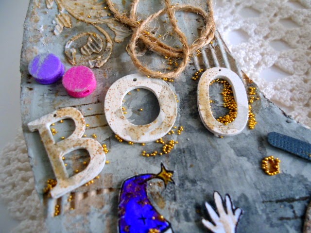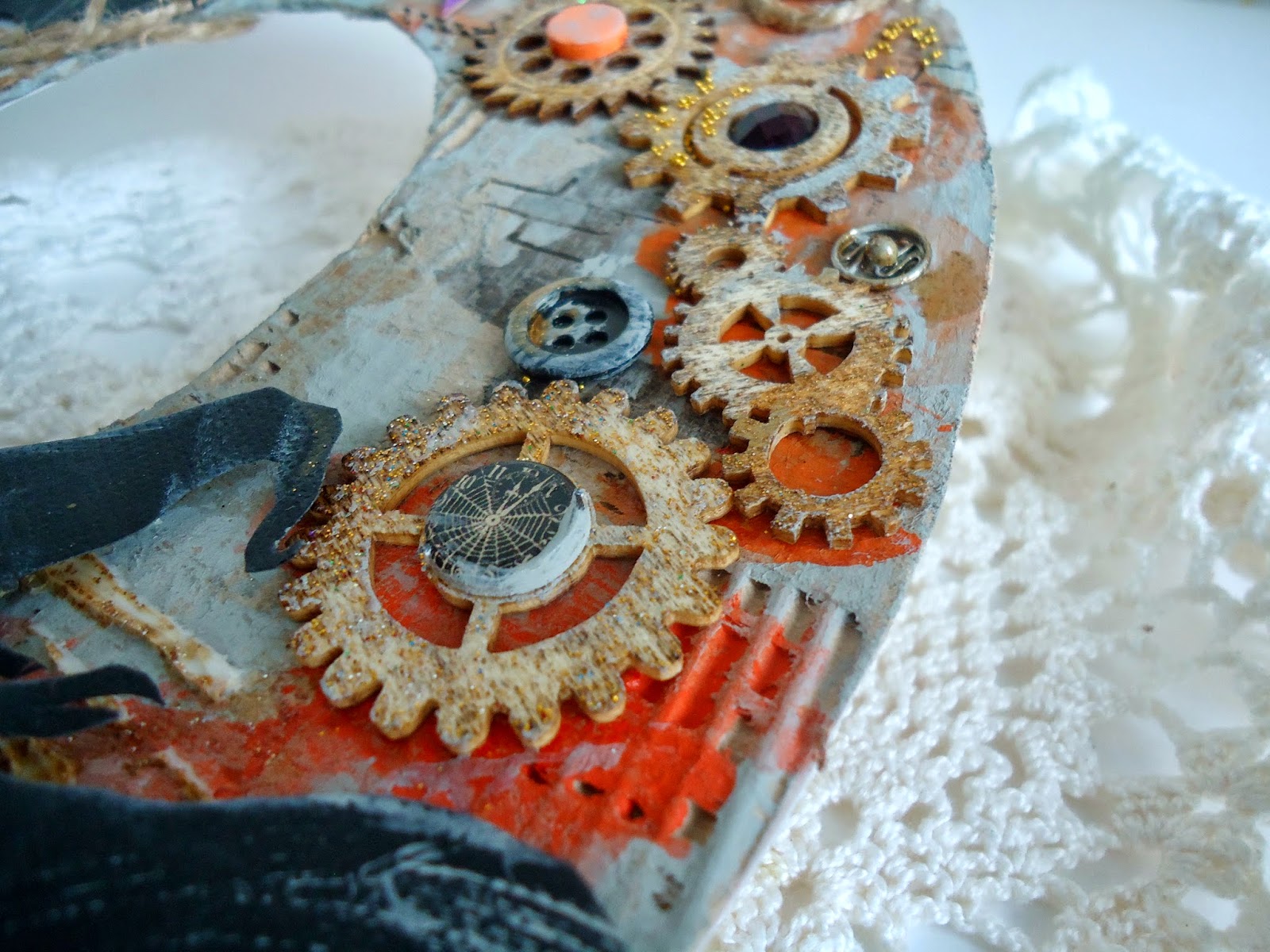 обработаны с помощью горячего эмбосинга, чуть покрашены серым акрилом