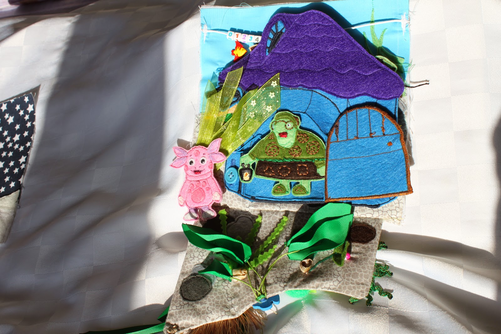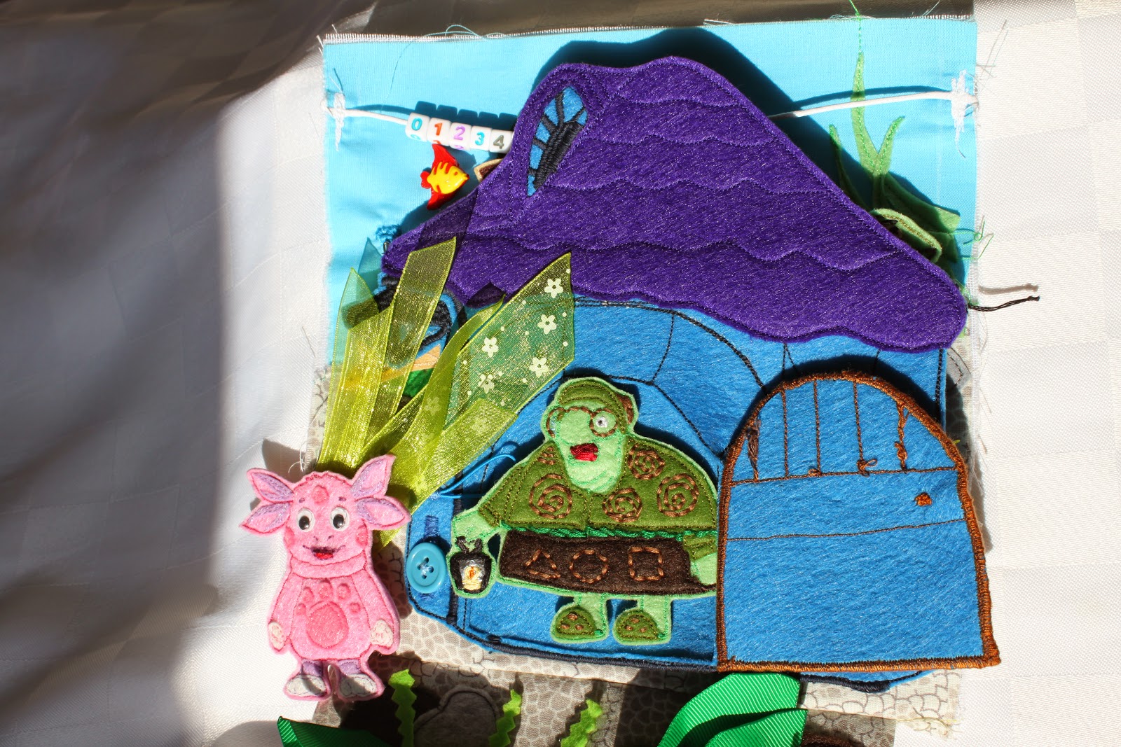 Хочу показать вам две первые странички книжки, которую шью в подарок сестренке, точнее ее сыновьям. ^_^ Книжка будет из 6 страничек (3 листа), но насыщенных играми-развивашками. Сделана по всеми любимому мультфильму Лунтик.
