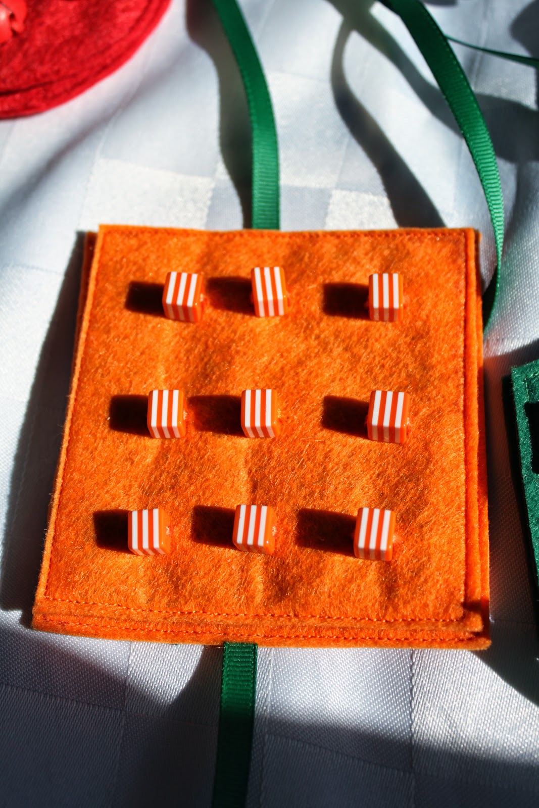 Декор фигур внутри укреплен брезентом, чтобы не оторвалось ничего и не деформировалось, вот к примеру сфотографировала в процессе пошива. На фотографиях 1 передняя деталь фигуры, потом пришивала заднюю часть с липучкой. Каждая фигура - это 2 слоя фетра: