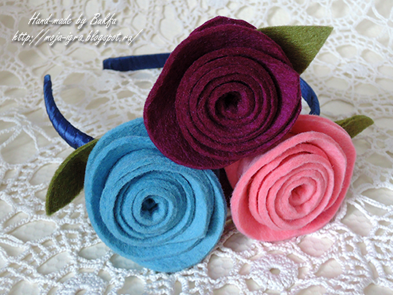 А это повторюшка старшей внучки - подарок ее маме. Перед праздником, приехав к нам, Вика увидела мой ободочек. И решила сделать такой же к 8 Марта.