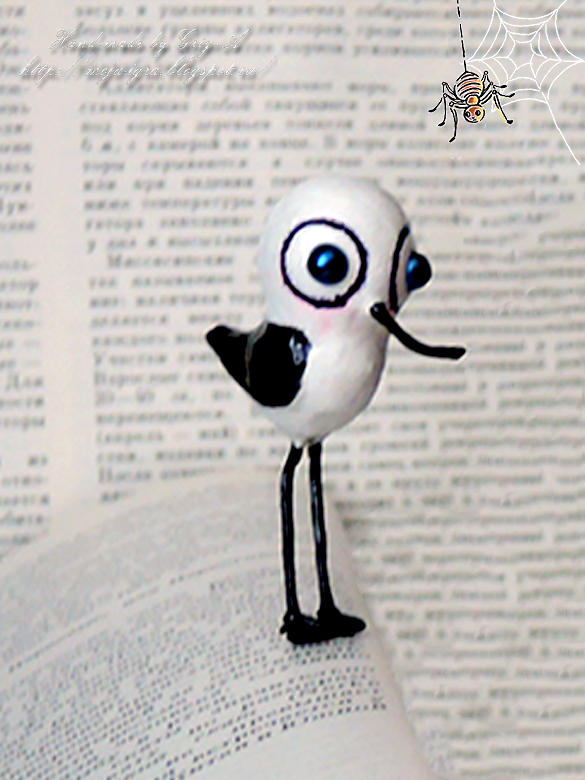из полимерной глины делаем веки и красивые ресницы; большую бусину используем на голову птицы, тушку птички делаем из упаковочного поролона и все заклеиваем полимерной глиной; и крокодила и птичку обрабатываем морилкой; далее покраска и лакировка.
