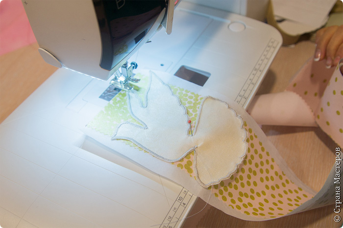 ...Сначала пригладить к лучу, плотно приклеивая, а затем пришить.