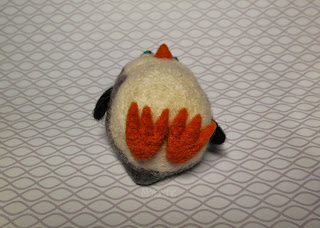 Шерсть эта была когда-то куплена за неимением другой (гребеная лента, тонкая мериносовая шерсть, почти в два раза дороже той, что я обычно покупаю), но стала одной из любимый и приятных для рук. Из нее успели родиться волк, Тоторо и микро-Тоторики, Ёжик, а также волосы у волчонка. Ну и этот, Третий :)