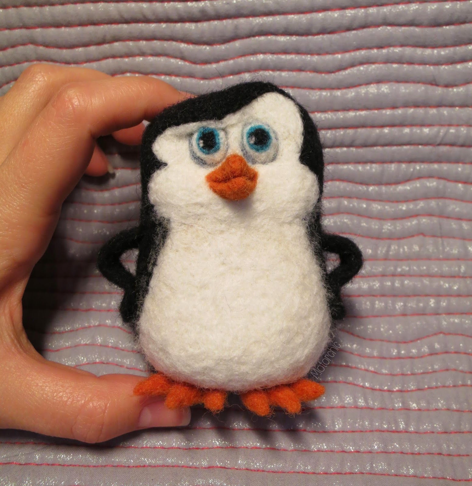 Вся технология изготовления та же, что и у предыдущего пингвинчика. Отличается только размер (Шкипер чуть ниже и шире) и положение крыльев.