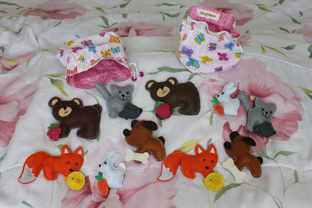 Готовы 2 заказа и они скоро отправятся в Москву, как только дошью 3 заказ - развивающий бортик как шила ранее только с использованием других тканей. Бортик будет для мальчика. А зверята в мешочках - двум девочкам.