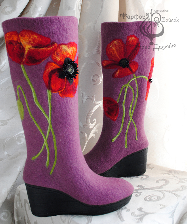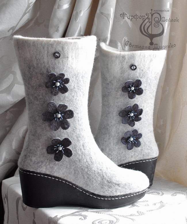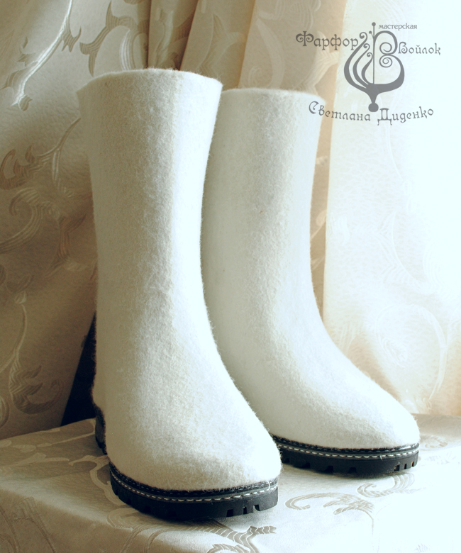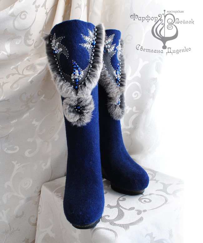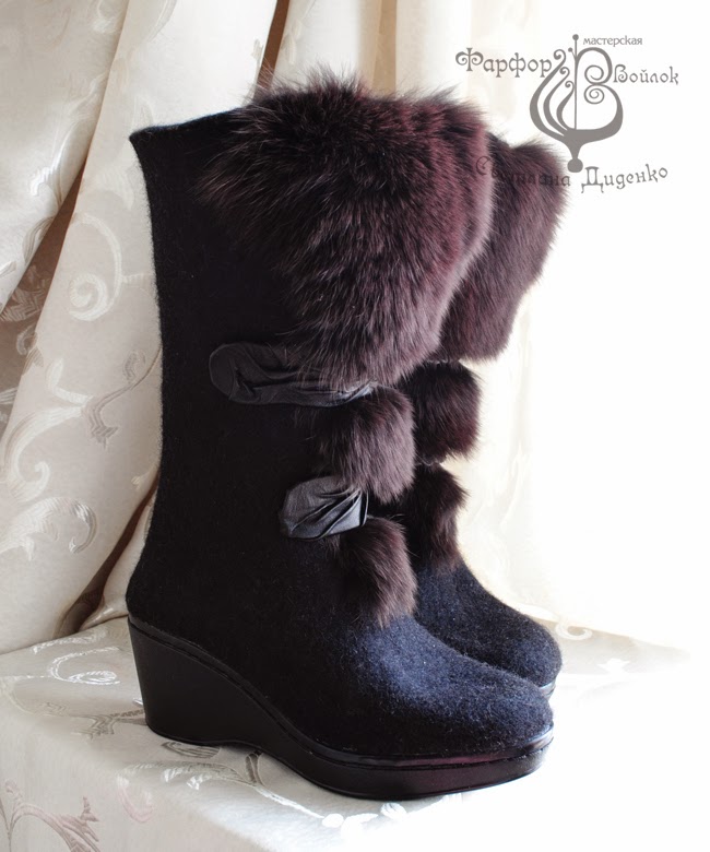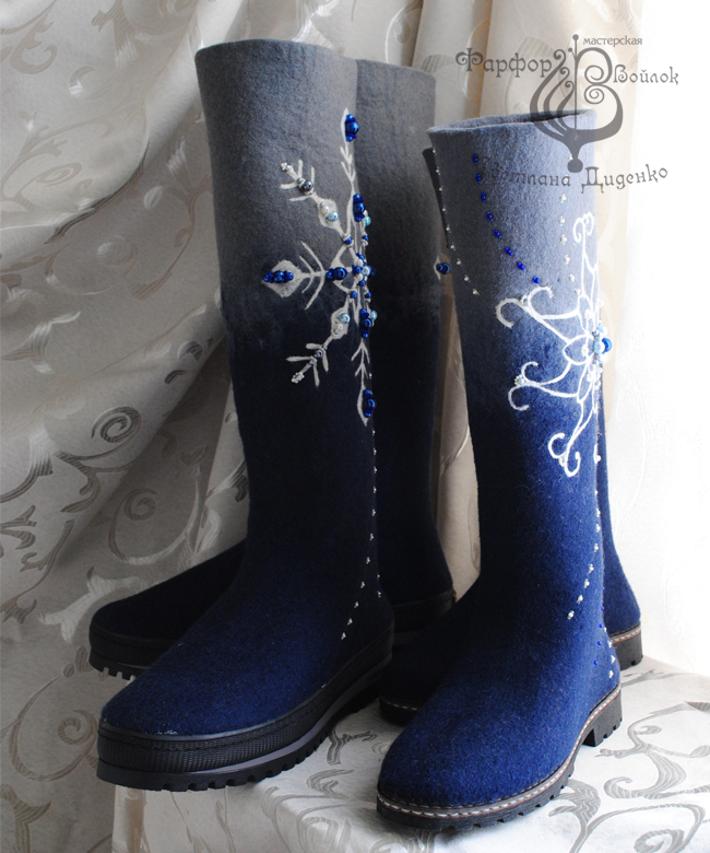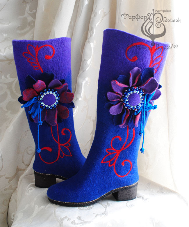Ах! Какая красота!!! Я первый и последний раз видела войлочные подобные сапожки лет 20 -25 назад в журнале "Работница" . И мечтала о подобной обуви, но разумеется за эти"долбаные" годы перестройки так ни в одном магазине ничего подобного и не встретила. Как жаль, что Вам не дают работать Как бесконечно жаль, что мир продолжает разрушаться... Почему красота не спасает МИР???