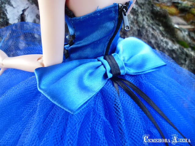Юбка только из фатина, я завязала очень много отрезков (ширина 5 см) на тонкую резинку, а потом пришила к корсету, поэтому получился такой объем.