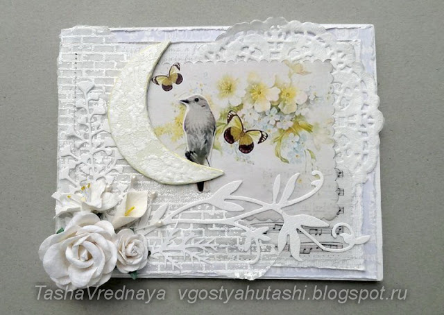 Таша, замечательная открыточка! Такая нежная и романтичная, прелесть! Свадебная серия тоже хороша, не представляла, что цветок из марли так суперски смотрится!