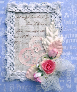 Очень красивая, нежная открытка! И карточки чудесные. Интересная идея с розой из марли: необычно и эффектно.