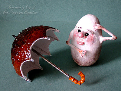 Вот Игорь сделал зонтик и грибу предлагает: "На, грибок, возьми свою шляпку, приоденься и в лес шуруй!"