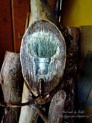 Помастерила на даче: вешалка с пробой декупажа (не вживление) на брашированном спиле соснового ствола (подходящих заготовок под рукой не было, а дочке вешалочка в комнату понадобилась.