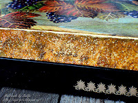 Ну, раз золото куполов в самом центре на крышке не очень заметно, сделаем золотыми борта, побрызгаем золотом на листья и бордюрчиком золотым низ коробочки украсим!