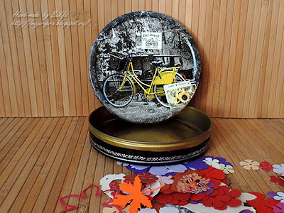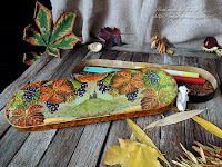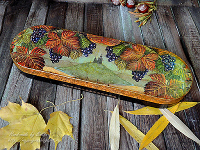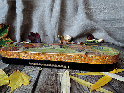 Внутренности тоже в цветах осени - декопатч тонюсенькой бумагой. Борта - просто бумага.