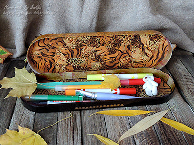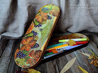 Раньше уже делала коробочку для карандашей - вот тут. Вот такие две коробка с карандашами: слева - для старшей, а справа - для младшей внучки!)))