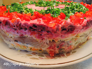 2. А это "Селедка под шубой" - традиционный новогодний российский салат (сельдяной торт), который я делаю, как торт. Повторюсь.
