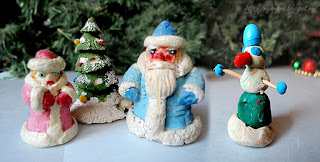 А это сам Дед Мороз возле ёлочки со Своей внучкой Снегурочкой и неизменным спутником и помощником Снеговиком (детское творчество - соленое тесто и пластилин!:))
