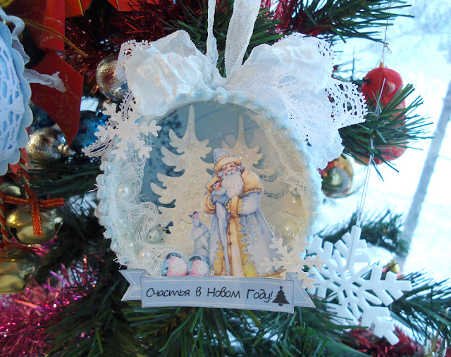 Игрушка ёлочная Новый год Ассамбляж Зимне-новогодние подвески Бисер Бумага Бусины Клей Кружево