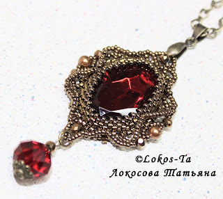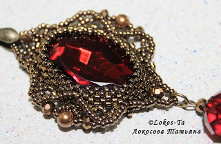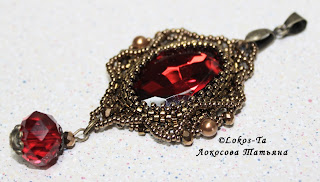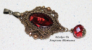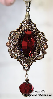 Кулон к серьгам красным Кружева . По той же схеме Гузели Бакеевой. Немного видоизмененной , т.к. размер стразы больше