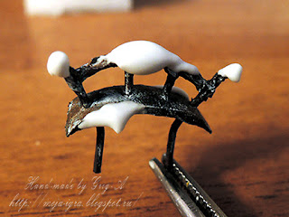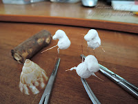 Дальше надо было сделать мумиков. В ход пошли мои бусины, даже жемчужные (бижутерия!))). Их закрепляем на проволоке, все это дело облепливаем глиной DAS и формируем тельце.
