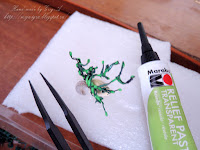 Водоросли склеены из чаинок черного байхового чая и покрашены акрилом.